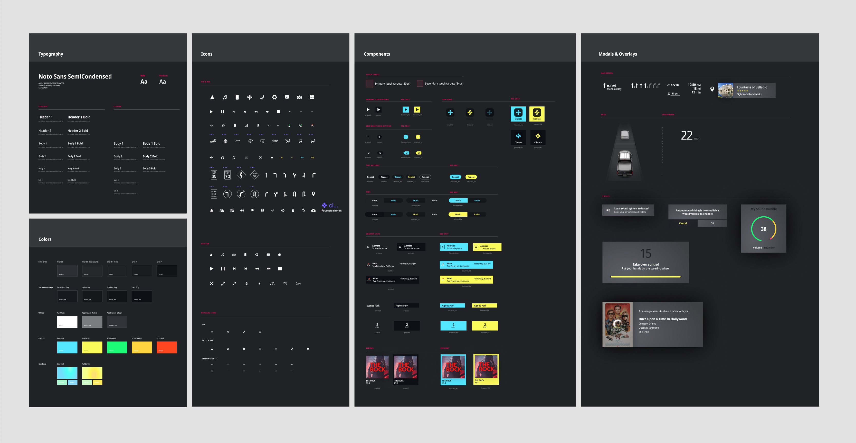 Consistency across the system is key to ensuring a pleasant experience. Together with Faurecia we have established ergonomic guidelines, touch targets, interaction patterns, states and much more to bring consistency in all of our designs.